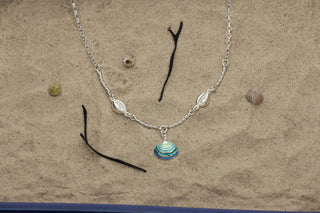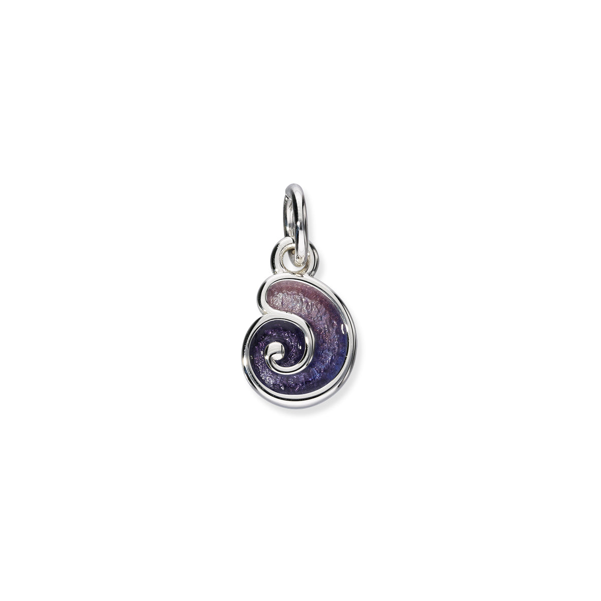 Attractive charm based on the swirling shapes of a Nautilus shell, available in sterling silver and enhanced with hot glass enamel in a variety of colourways.